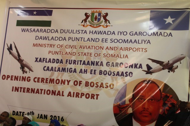 Jimco, Janaayo 08, 2016 (HOL) — Madaxweynaha Soomaaliya, Xasan Sheekh Maxamuud ayaa maanta ka qayb-galey xaflad lagu furayay garoonka diyaaradaha magaalada Boosaaso ee xarunta gobolka Bari oo dhawaan dayac-tir lagu sameeyay.