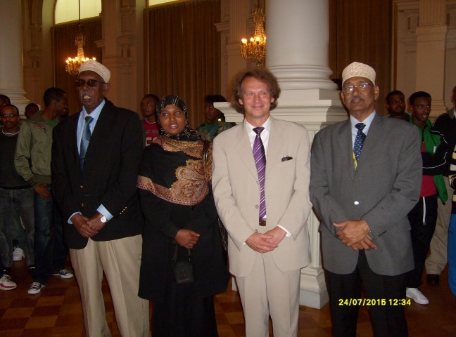 Khamiis, July 26, 2007HOL): Aqalka Duqa magaalda Helsinki ayaa maanta waxaa ka dhacday xaflad aad u ballaaran oo lagu soo dhaweeyey dhamaan maamulka iyo ciyaaryahannada Eurosom 2007 iyo weliba guddoomiyaha guddiga Olombikada Soomaaliyeed mudane Abdulkadir Abkow iyo wafdigii uu hogaaminayey oo ay ka mid ahaayeen, Duraan Faarax, Bahsiir Foxis, Axmed Nuur Elman, kabtan Shaash iyo Iimaan Iikar.