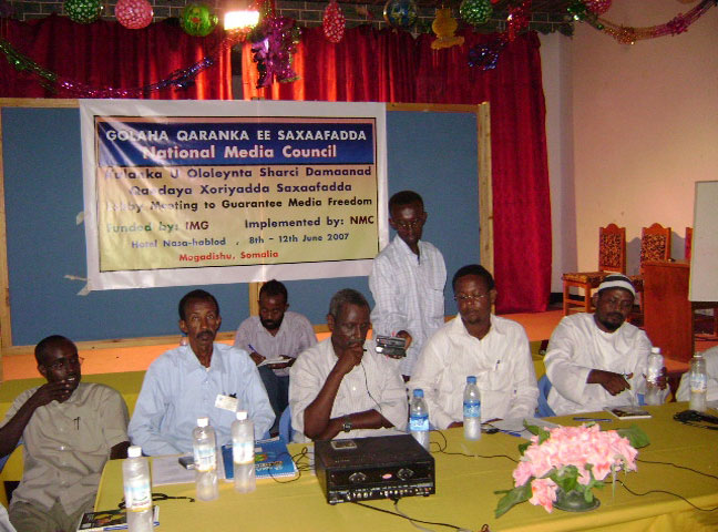Jimco, June 08, 2007(HOL): Waxaa maanta magaalada Muqdisho ka furmay Kulan loogu magac daray Kulanka-u-Ololeynta Sharci damaanad qaadaya Xoriyadda Saxaafadda, kaasi oo ay ka qeyb-gelayaan Xubno ka socda Saxaafadda, Dowladda Federaalka, Odayaasha Dhaqanka, Culumaa'udiinka, Ganacsatada, Haweenka, Sharci-yaqaano iyo xubno ka socda Bulshada Rayidka.