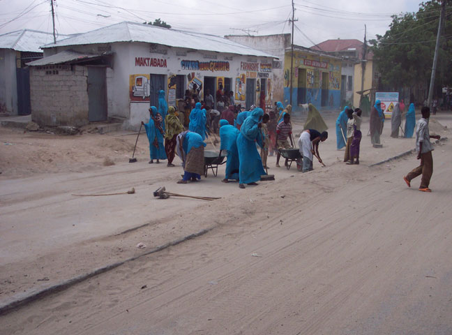 Amarka lagu nadiifinayo waddooyinka Muqdisho oo horay u ahaa kuwo aaney nadaafadooda wanaagsaneyn, isla markaana ay carro ka buuxsantay ayaa waxaa bixiyay Maamulka cusub ee Gobolka Banaadir, kaasi oo bixinaya kharashka la siinayo haweenka ku guda jira howsha nadaafadeed.