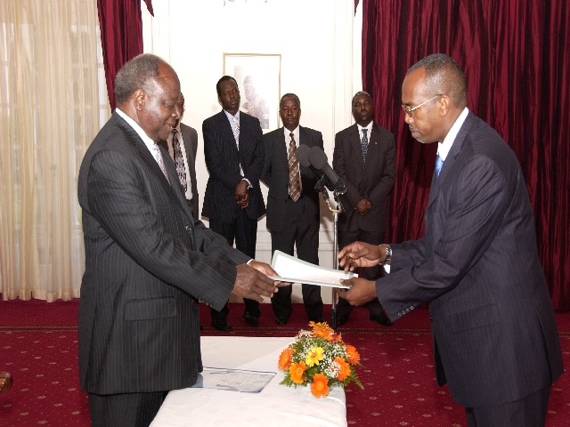 Sabti, October 20, 2007(HOL): Madaxweynaha Dowladda Kenya Mr. Mwai Kibaki ayaa maalintii shalay ahayd waxaa uu warqadaha aqoonsiga Danjirenimo uu ka guddoomay Safiirka Soomaaliya u fadhiya Dalka Kenya Danjire Maxamed Cali Nuur Ameerika.