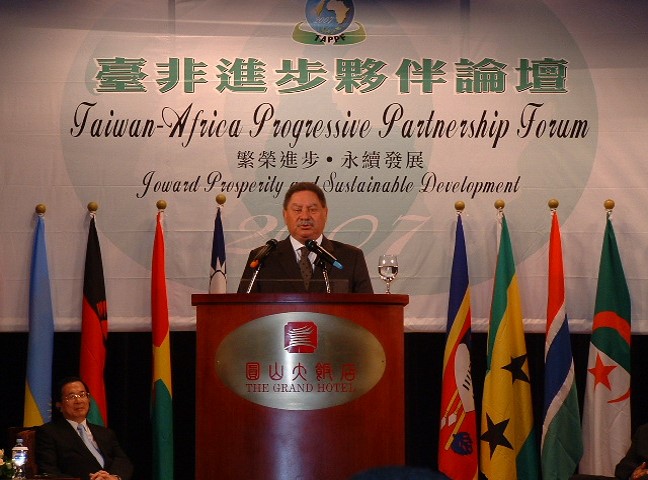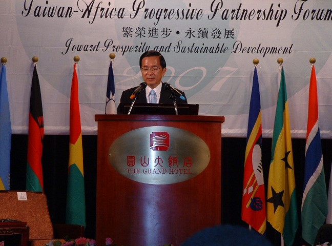 Waxaa shirkaas Furay Madaxwaynaha Wadanka Taiwaan Mr. ChenShui-bian oo halkaas khudbad aad loogu riyaaqay ka jeediyay isagoo sheegay in Taiwaan ay diyaar u tahay in ay wax badan la qabato Qaardda Afrika oo ay dhibaatooyin fara badan haystaan. Waxaana uu carrabka ku dhuftay in Taiwaan ay maanta fursadaan iskaashiga ah ay u furayso Qaaradda Afrika ay haboontahay in loo arko mid ay biniaadanimadu farayso balse aan dano gaara ah laga lahayn, waayo buu yiri markii Taiwan Dhulgariirkii cuslaa ku dhacay 2001 waxaa inoo soo gurmaday Caalamka - 270 Urur oo samafal ah ayaa hawlo samatabixina inoo fidiyay. “Annagana maanta markaan ka baxaynay dhibkii oo dhaqaalahayna uu aad iyo aad u kobcay kuma sii fiirsan karno in dunida dhibaato ay kusii jiraan dadka ku nool , taasina ma aha inaan saacdinaynee waa wajib caalami ah" ayuuna yiri Madaxweynaha