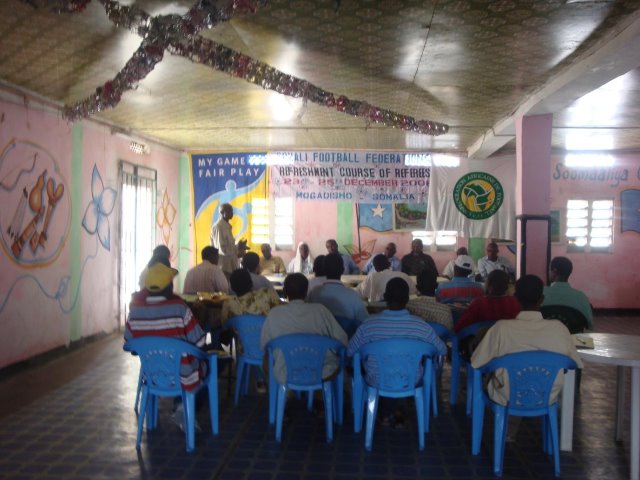 Arbaco, December 24, 2008(HOL): Shalay ayaa hotelka Jeddah ee magaalada Muqdisho waxaa ka furmay seminaar ay ka qeyb qaadanayaan 20 garsoore oo ah kuwa heerka koowaad ee kubadda cagta Soomaaliya, waxaana seminaarkaas lagu baranayaan duruus ku saabsan shuruucda cusub ee garsoorka kubadda cagta adduunka.