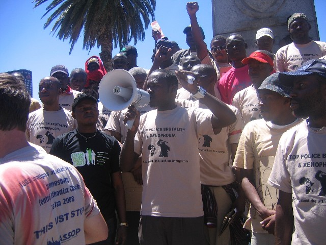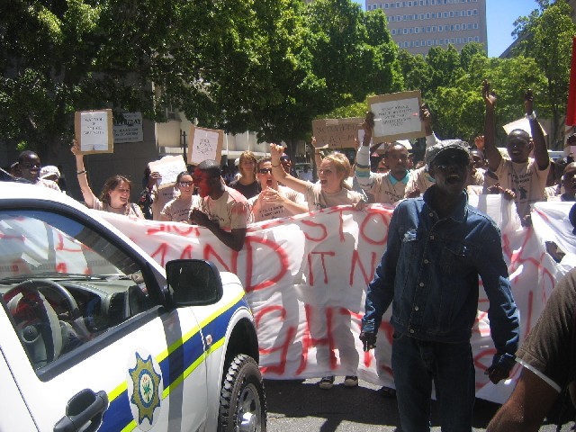 Sabti, February 09, 2008(HOL): Banaanbax ballaaran oo looga soo horjeeday tacadiga ay ciidamada booliska ee dalka south Africa ku hayaan dadka qaxootiga ah ee ku nool wadankaas ayaa 7dii bishan ka dhacay magaalda Cape Town ee dalka South Africa.