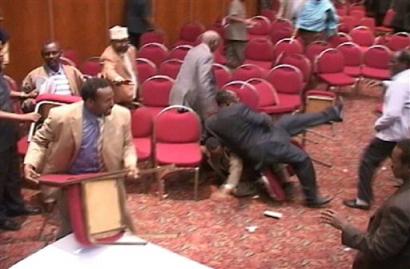 | Xubnaha Baarlamaanka Soomaaliya oo ku dhex dagaallamaya Hotelka Grand Regency ee Nairobi 17-kii Maarso 2005 (Sawir la yaab leh) |