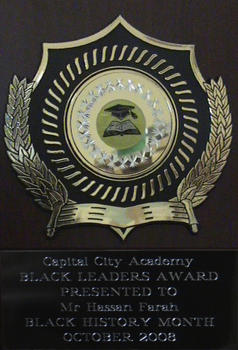 Akaademiyada ku taala Woqooyi-bari London ee loo yaqaan Capital City Academy kuna taala xaafada Willesden, ayaa waxaa lagu gudoonsiiyey bilad howlkarnimo, Macalin Xassan Faarax, oo loo yaqaan (Macalin John) loona gartay in uu yahay halyeeyga sanadka 2008 loo gartay Black History Month 2008, Capital City Academy.