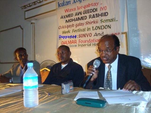 Sabti, 22 November 2008 (HOL): Abwaan Axmed Aw-Geeddi iyo Dr. Maxamed Rashiid Sheekh Xasan oo ka mid ahaa abwaano iyo aqoonyahan badan oo dhawaan ka qaybgalay bandhig suugaanta Soomaalida lagaga hadlayey oo loo bixiyey SOMALI WEEK FESTIVAL oo ka dhacay magaalada London ee cariga Ingiriiiska, ayaa kulan ballaadhan oo loo sameeyey kaga xog-waramay bandhig suugaaneedkaa, wixii lagu soo bandhigay iyo wixii ay halkaa ku soo arkeen.