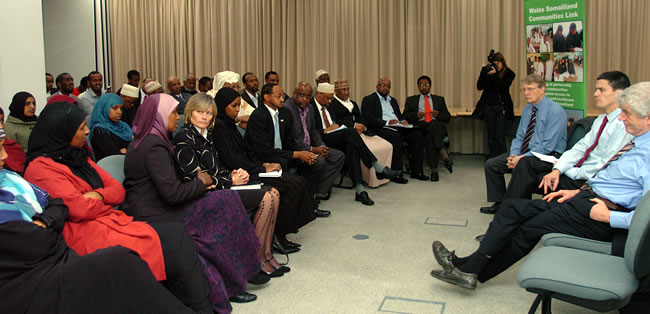 Cardiff, Wales - Wasiirka Arrimaha debada ee dalkan Britain Hon David Miliband MP ayaa kulan gaar ah oo aad u balaadhan manta la yeeshay Jaaliyada Somaliland eek u dhaqan Gobolka Wales gaar ahaan caasimada gobolkaas ee Cardiff, Kulankan oo ay kasoo qayb galeen boqolaal ka tirsan jaaliyada Somaliland iyo ururrada Bulshada, Dhalinyarada, Madaxda iyo Waxgardaka Bulshada, eek u dhaqan gobolkaasi iyo waliba Wasiirka koowaad ahna badhasaabka gobolka Wales Rt. Hon Mudane Rhodri Morgan AM iyo Mudane Alun Mikchal MP oo ka tirsan Baarlamaanka dhexe ee Britan isla markaasna ah Gudoomyaha gudiga Baarlamaanka UK ee Somaliland oo u ololeeya qadiyada Somaliland.