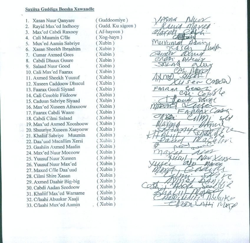 Odayaasha Bayaanka soo saaray iyo Saxiixooda: