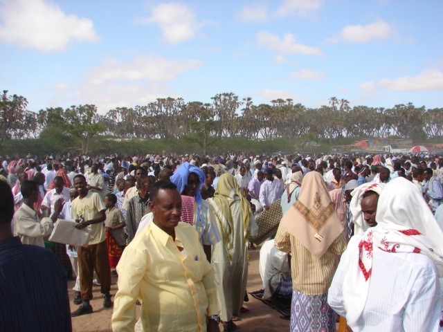 Talaado, September 30, 2008(HOL): Magaalada Beledweyne ee Xaruta u ah Gobalka Hiiraan ayaa si aan horay loo arag waxaa looga oogay Munaasabada Ciidul-fidriga, iyada oo Kumanaan dad weynaha Magaalada ah isugu soo baxeen Barxad weyn oo ku taala Ex.xaruntii hore ee Ciidamada Xoogagga Dalka Soomaaliyeed oo lagu magacaabo (Lama-galaay).