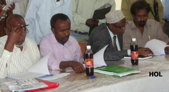 Wakiillada Seddexda Xisbi ee Somaliland iyo Guddiga Doorashada. SAWIRKA: BARQAD KAARIYE/HOL