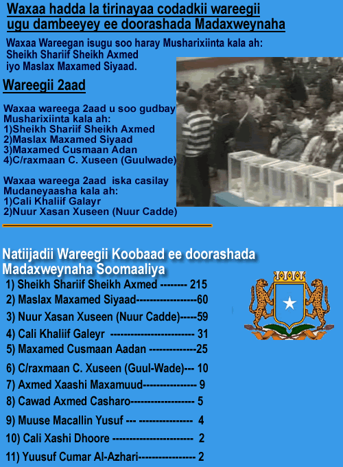 - Sheekh Shariif Sheekh Axmed oo loo doortay Madaxweynaha Soomaaliya