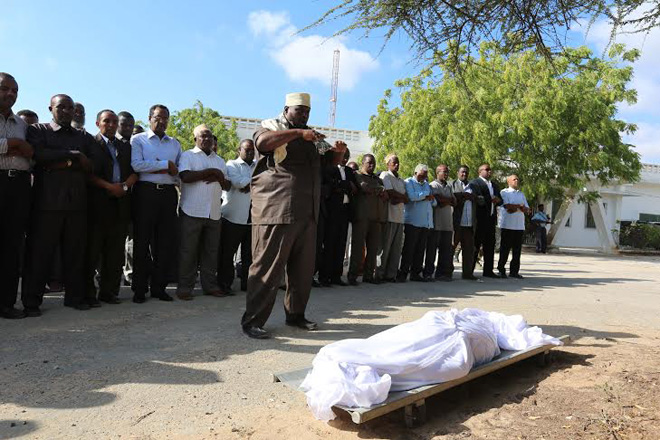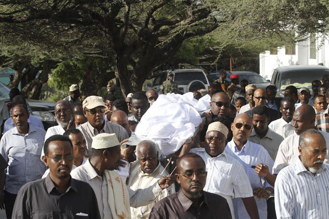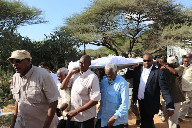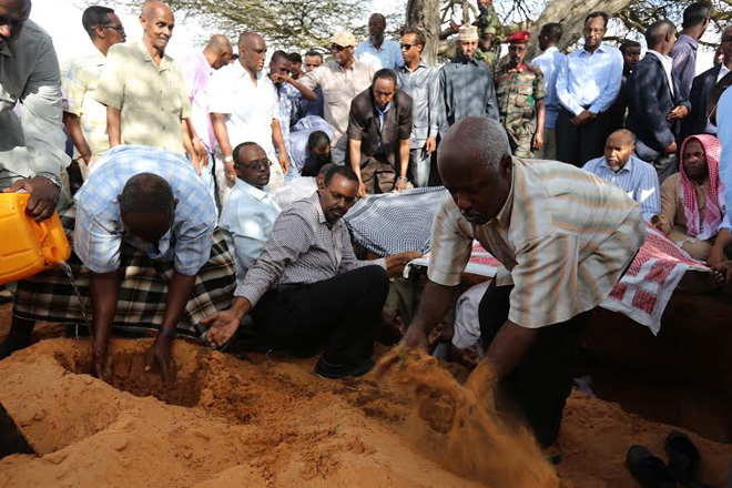 Sabti, December 07, 2013 (HOL) — Xildhibaan Maxamed Warsame Faysal oo shalay lagu dilay qarax ka dhacay afaafka hore ee madaxtooyada Somalia oo maanta lagu aasay gudaha isbitaalka Madiina ee magaalada Muqdisho, iyadoo aaskiisana ay ka qayb-galeen ra’iisul wasaaraha xilka ka dagaya ee Somalia, Cabdi Faarax Shirdoon (Saacid), xildhibaanno uu ka mid ahaa guddoomiye ku xigeenka baarlamaanka iyo wasiirro ka tirsan  xukuumadda.