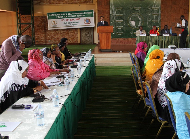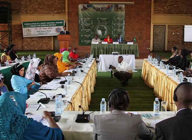 Arbaco, Juun 12, 2013 (HOL) — Shir ay soo qabanqaabisay AMISOM oo gun-dhig u ah sidii loo sameyn lahaa sharciga horumarinta jingsiga (Ragga iyo Dumar Soomaalida) ayaa maanta ka furmay magaalada xarunta dalka Uganad, waxaana shirkaas kasoo qaybgalay dad ka socday dalal badan oo Afrikaan ah.