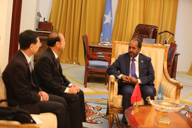 Isniin, December 15, 2014 (HOL) — Madaxweynaha Somalia, Xasan Sheekh Maxamuud ayaa maanta xafiiskiisa ku qaabilay wafdi dalka Shiinaha ka socday oo uu hoggaaminayay safiirka cusub ee Shiinaha u fadhiya Somalia, iyadoo madaxweynuhu uu ka guddoomay warqadaha aqoonsiga.