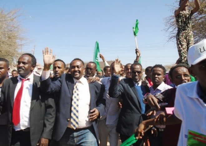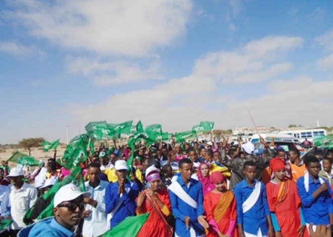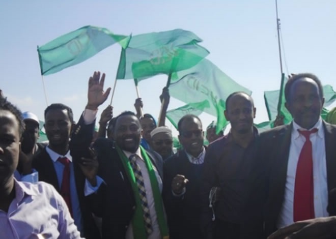 Isniin, December 15, 2014 (HOL) — Taageerayaasha xisbiga mucaaradka ah ee UCID ayaa maanta dhoolotus balaadhan ka dhigay magaaladda Hargeysa, waxaanay si diiran ugu soo dhoweeyeen magaalada musharaxa xisbigaasi ee xilka madaxweynaha, Jamaal Cali Xuseen oo muddo dibadda ku maqnaa.