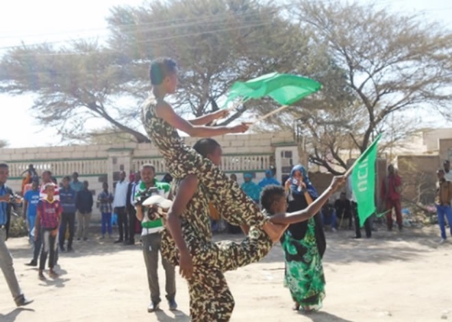 Boqolaal ka Mid Ah tageerayaasha xisbiga UCID ayaa Caleemo Qoyan iyo astaanta UCID kusoo dhaweeyey Musharaxa ka dibna xarunta dhexe ee xisbiga loogu sameeyey barnaamij balaadhan oo loogu soo dhoweynayo.