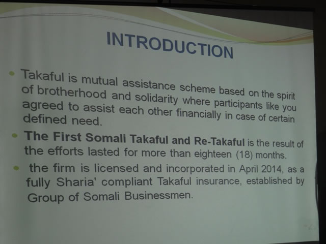 Munaasabadda lagu furayay shirkaddan oo lagu magacaabo Takaful and Re-Takaful ayaa waxaa ugu horreyn lagu soo bandhigay barnaamij ka hadlaya qorshaha howsha ay bulshada Soomaaiyeed u qabanayso, iyadoo madaxda shirkaddan ay faahfaahin ka bixiyeen ujeed-dooyinka loo furay shirkaddan.