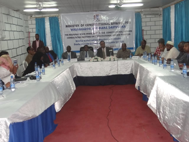 Kulanka oo ay soo qaban-qaabisay wasaaradda dastuurka Soomaaliya ayaa wuxuu socon doonaa labo maalmood, iyadoo la sheegay in ujeeddada shirka ay tahay sidii maamul-goboleedyadu ay kaalin uga qaadan lahaayeen geeddi-socodka dib u eegista dastuurka dalka.