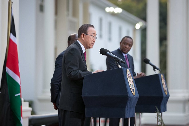 Xoghayaha Guud ee QM, Ban Ki Moon ayaa khudbadii uu ka jeediyey shirka jaraa’iid ee lagu qabtay madaxtooyada kenya ee magalada nairobi ka sheegay in uu ugu baaqayo dalka Kenya inuu dhowro sharuucda caalamiga ah ee uu wadankaasi saxiixay ee ku aadan xaquuqda Qaxootiga.