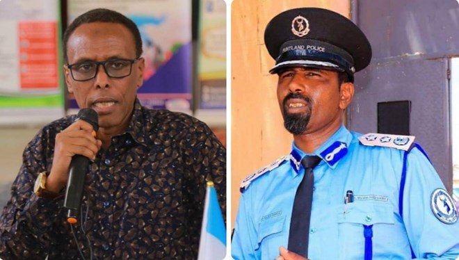 newsinsideMasuuliyiintan oo kala ah, guddoomiyaha gobolka Mudug ee dhinaca Puntland Cabdiladiif Muuse Sanyare iyo taliyaha qeybta booliiska gaashaanle sare, Muumin Cabdi Shire, ayaa si toos ah warbixin ku saabsan amniga ugu gudbinayay jaaliyadda dibadda.
