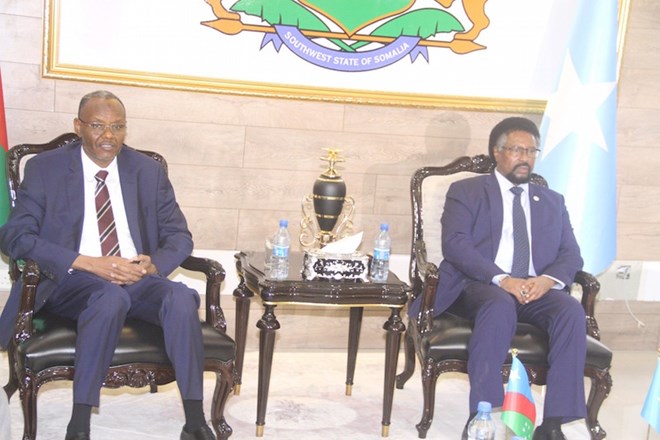 Wafdiga madaxweynaha waxaa garoonka diyaaaradaha Baydhabo ku soo dhaweeyay madaxweynaha dowlad gobolleedka Koonfur Galbeed Cabdicasiis Maxamed Xassan Laftagareen iyo mas'uuliyiin ka tirsan maamulka.