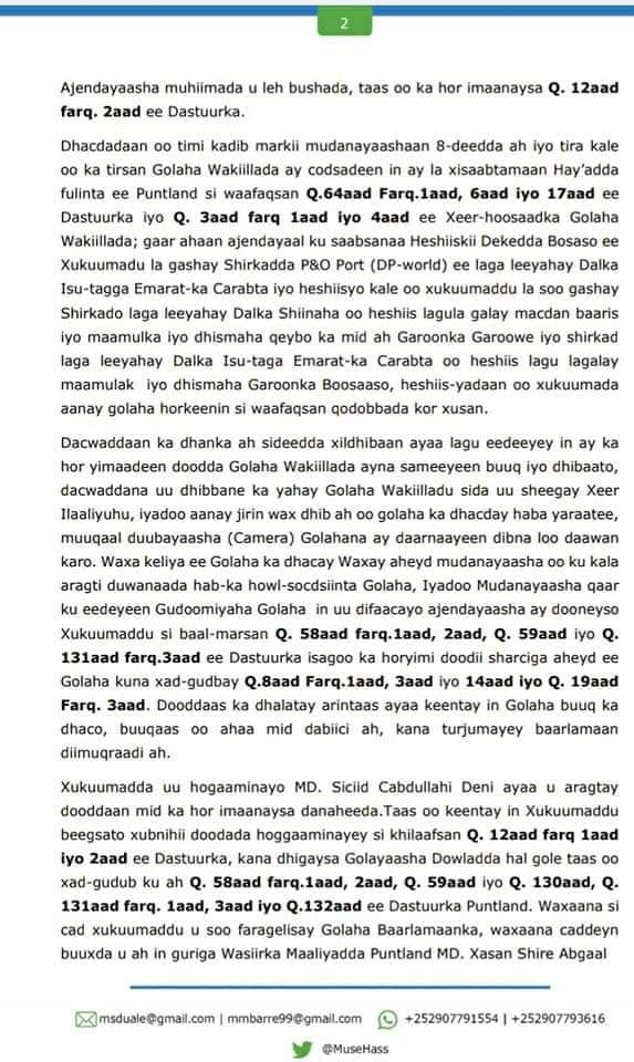 Halkaan hoose ka akhriso bayaankaa xildhibaanada.