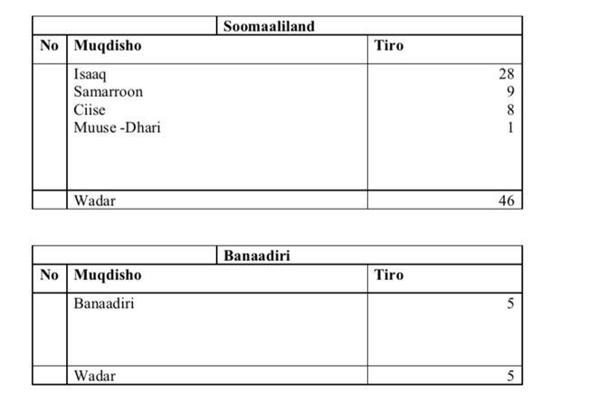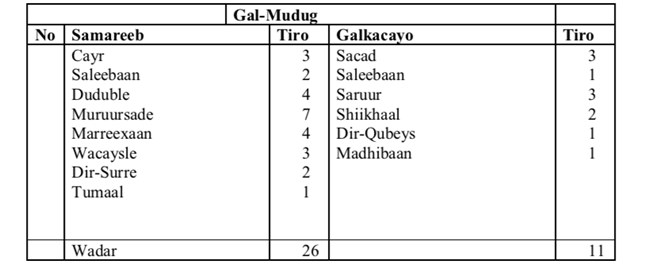 Hoos ka akhri Jadwalka iyo Shaxda;
