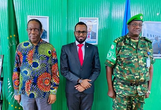 Sabti, October 3, 2020 (HOL) - Wasiirka wasaaradda ammaanka ee maamulka Hirshabeelle Maxamed Cabdiraxmaan Kheyre ayaa waxa uu magaalada Muqdisho kula kulmay wakiilka Guddoomiyaha Guddiga midowga Afrika u fadhiya Soomaaliya Danjire Francisco Caetano Madeira iyo taliyaha ciidamada nabad-ilaalinta midowga Afrika u jooga Soomaaliya "AMISOM" General Ndegeye.