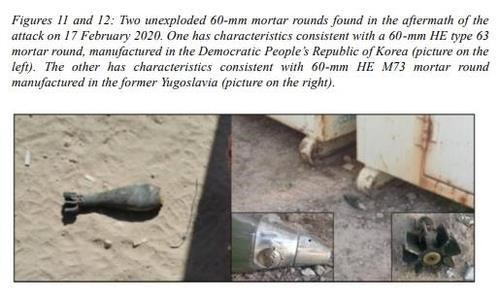"Laba madfac oo 60-mm ah oo aan qarxin ayaa laga helay weerarkii ka dib 17-kii Febraayo 2020. Mid wuxuu leeyahay astaamo u dhigma nooca 60-mm oo ah hoobiye ay soo saarto Jamhuuriyadda Kuuriya," ayuu yiri guddigu.