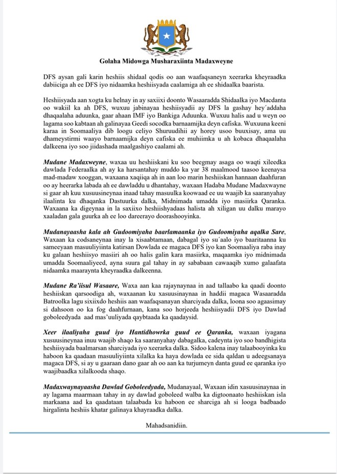 Hakaan hoose ka akhriso digiinta kasoo baxday heshiiska.