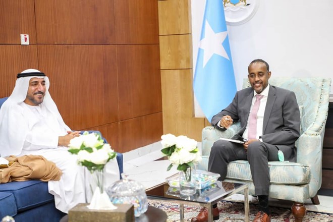 Isniin, Juun, 7, 2021 (HOL) - Raysal wasaaraha Soomaaliya Maxamed Xuseen Rooble ayaa maanta Xafiiskiisa kulan kula yeeshay Danjiraha dowladda Imaaraadka Carabta u fadhiya Soomaaliya Maxamed axmed Alcuthman.