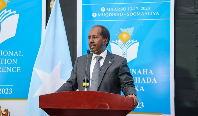 Isniin, Maarso, 13, 2023 (HOL) - Madaxweynaha dowladda Fedaraalka Soomaaliya Xasan Sheekh Maxamuud oo Maanta magaalada Muqdisho ka daahfuray shirweynaha qaran ee Waxbarashada dalka ayaa sheegay in dowladdiisa ay ka go'an tahay dib u soo nooleynta, mideynta iyo tayeynta nidaamka Waxbarashada dalka.