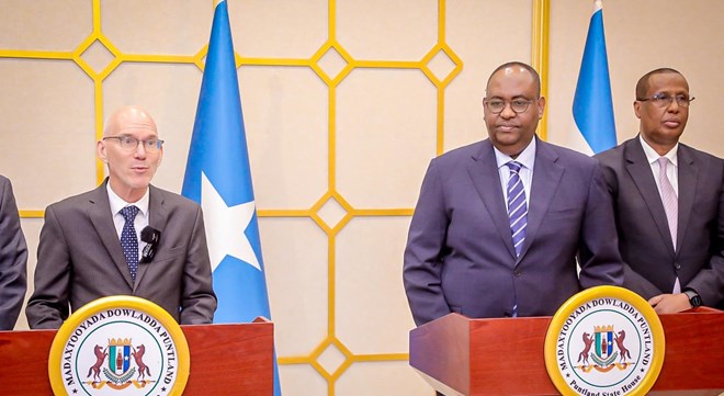 newsinsideJames Swan oo shalay booqasho ku tagay magaalada Garowe, ayaa sheegay in ay faa’iido u tahay shacabka Soomaaliyeed haddii madaxda Dowladda Federaalka iyo Dowlad Goboleedyada ay ka gudbaan khilaaf kasta oo jira, isla markaana la helo qaab wada shaqeyn ah.