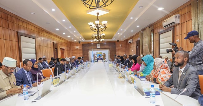 newsinsideKulanka ayaa waxaa shir guddoomiyay Raysal wasaaraha Xukuumadda Fedaraalka Soomaaliya Xamse Cabdi Barre, waxaana goobjoog ahaa ku xigeenkiisa iyo inta badan golaha wasiiradda.