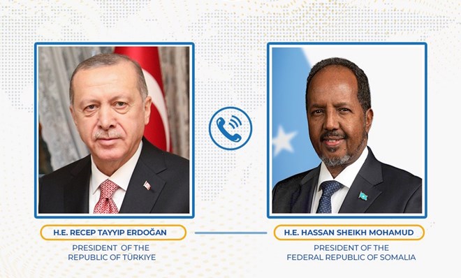Talaado, Luulyo, 30, 2024 (HOL) - Madaxweynaha Soomaaliya Xasan Sheekh Maxamuud iyo dhigiisa dalka Turkiga Recep Tayyip Erdogan ayaa Xalay wadahadal ku yeeshay khadka taleefanka oo ay kaga wadahadleen arrimo dhowr ah.