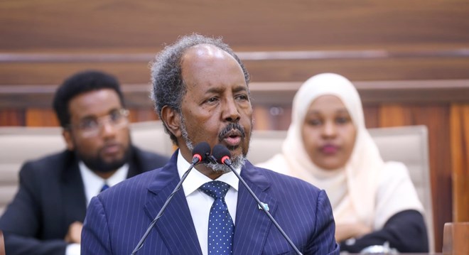 Axad, Luulyo, 7, 2024 (HOL) - Madaxweynaha dowladda Federaalka Soomaaliya, Xasan Sheikh Maxamuud ayaa sheegay, Alshabaab inay qeybo kamid ah gobolada dalka ka bilaabeen iska horkeenidda qabaailada si ay colaad uga dhex abuuraan, dhexdoodana uga abuuraan cadowtinimo.
