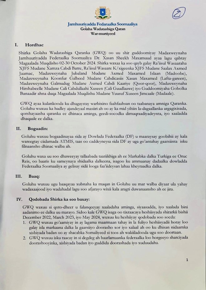 Qodobadan ayaa qeyb ka ahaa nuxurka war murtiyeed kasoo baxay shirka Golaha Wadatashiga Qaran oo uu shir guddoominayay Madaxweyne Xasan Sheekh Maxamuud, kaasoo maanta lagu soo gabagabeeyay magaalada Muqdisho.