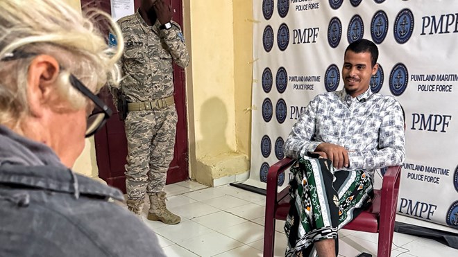 Ciidamada ammaanka Puntland ayaa ninkan horey usoo bandhigay, isagoo ahaa mid kamid ah laba dagaalame oo ajnabi ah oo katirsan kooxda Daacish (ISIS), kuwaas oo lagu eedeeyay inay ku lug lahaayeen qaraxyo iyo howlgalada kooxda Daacish ka fulisay gobolka Bari.
