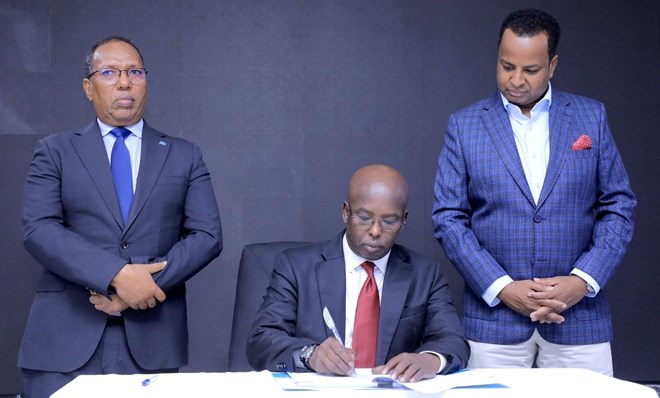 Arbaco, February 12, 2025 (HOL) - Munaasabad lagu soo bandhigayey saxiixa heshiiska shirkadaha loo qaatay tartanka dhismaha qaar ka mid ah dayactirka iyo dib udhiska waddooyinka Magaalada Muqdisho ayaa xalay waxaa aqalka Dowladda Hoose ee Xamar ka daah furay Ra'iisul wasaare kuxigeenka dalka Cabdisalaan Cabdi Cali waxaana si rasmi ah heshiisyadaasi u saxiixay Gudoomiyaha Gobolka Banaadir.