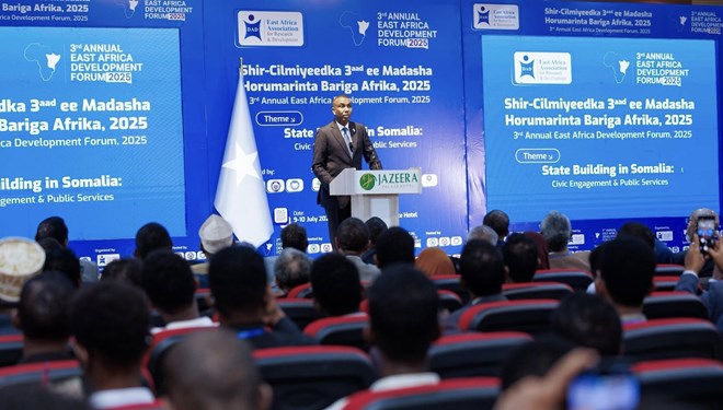 Arbaco, Luulyo 9, 2025 (HOL) - Ra’iisul Wasaaraha Xukuumadda Federaalka Soomaaliya, Xamsa Cabdi Barre, ayaa ka qeyb galay Shir-Cilmiyeedka 3-aad ee Madasha Horumarinta Bariga Afrika, isagoo halkaas ka jeediyay khudbad xooggan oo ku saabsan mustaqbalka Soomaaliya.