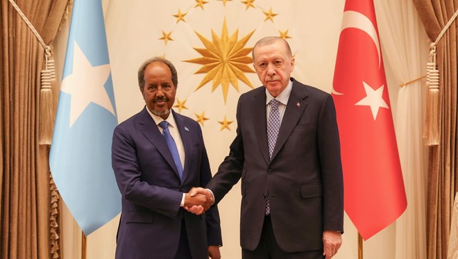 Xasan Sheikh iyo Erdogan ayay madaxtooyadu sheegtay inay si qoto dheer uga wada hadleen howlgallada iyo dagaalka ka dhanka ah Alshabaab, iyagoo bogaadiyey iskaashiga labada dal ee dib u dhiska Ciidamada Qaranka Soomaaliyeed iyo wiiqidda xagjirnimada.