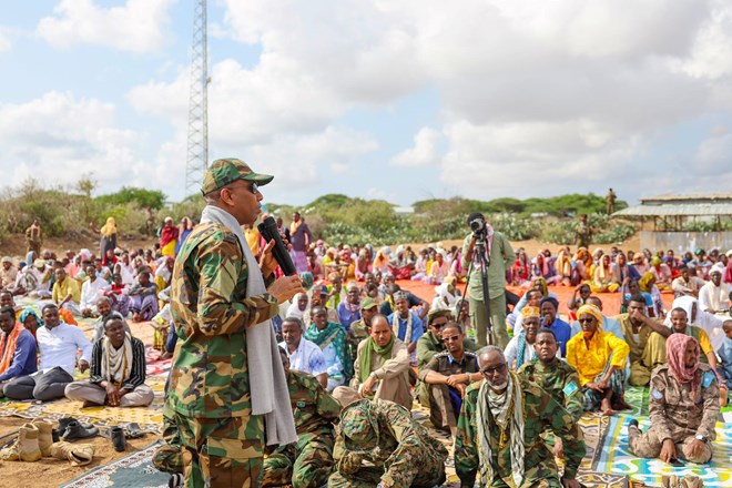 Axad, Maarso 30, 2025 (HOL) - Raysal Wasaaraha Xukuumadda Federaalka Soomaaliya Xamse Cabdi Barre ayaa saakay Salaadda Ciidda kula tukaday cutubyo ka tirsan ciidamada dowladda iyo shacabka ku nool deegaanka Nambar 50 ee gobolka Shabeellaha Hoose.