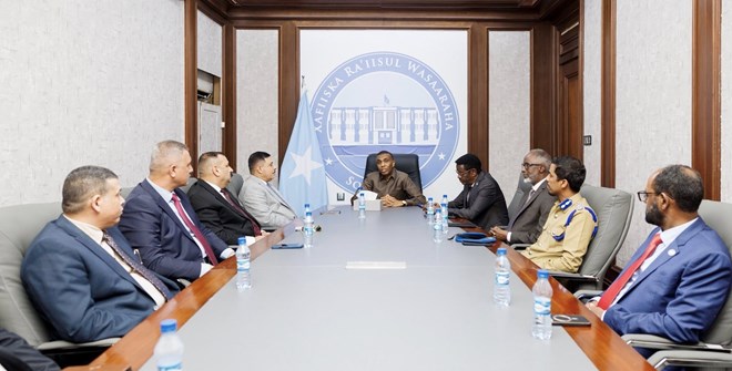 Khamiis, November 6, 2025 (HOL) - Raysal Wasaaraha Xukuumadda Federaalka Soomaaliya Xamse Cabdi Barre ayaa xafiiskiisa magaalada Muqdisho kulan gaar ah kula yeeshay wafdi ka socda dowladda Ciraaq.