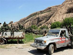 Transitional Federal Government soldiers patrol in Burhakaba, Somalia, Tuesday, Dec 26, 2006. Islamic fighters were in a tactical retreat Tuesday, a senior Islamic leader said, as government and Ethiopian troops advanced on three fronts in a decisive turnaround in the battle for control of Somalia. (AP Photo) |