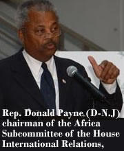 Rep. Donald Payne, D-N.J., chairman of the Africa Subcommittee of the House International Relations, said Washington should have been involved in supporting democracy efforts long before it came down to the issue of counter-terrorism.