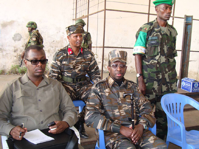 Mogadishu. The President, whose weak Federal Transitional government is locked in a fierce fighting with several Islamist groups trying to overthrow it, commended the troops for their bravery and patriotism. The President was accompanied in his visit with some members of parliament and senior military officers, including commander in-chief of army forces, General Yusuf Hussein Osman. Heavily armed AMISON troops were deployed in the area to ensure security of the President.