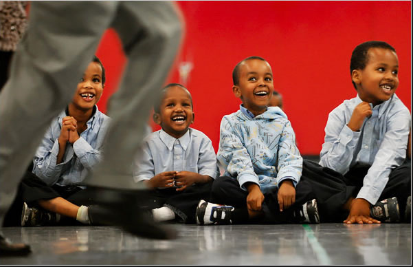 Kindergartners at Twin Cities International Elementary School, a charter school in downtown Minneapolis founded by leaders of the city's large East African community. For some immigrant families, charter schools have become havens where their children are shielded from the American youth culture that pervades large district schools. Photo: Ben Garvin for The New York Times