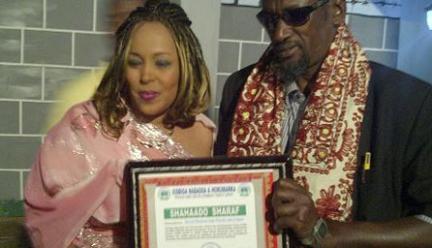 Somali singer Zeinab Labadhagah receiving a certificate of appreciation in Kampala, Uganda November 5, 2012. PHOTO | NATION MEDIA GROUP