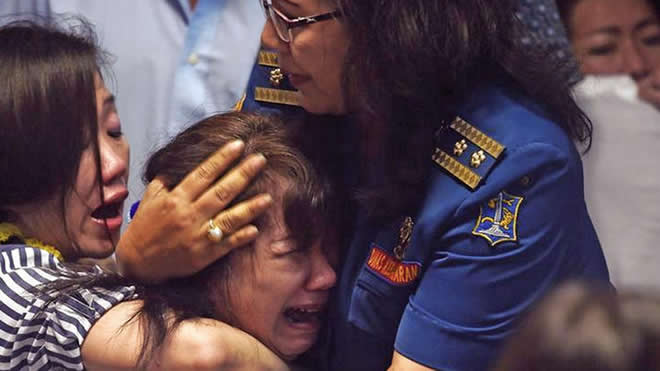 Pictures of floating bodies were broadcast on television and relatives of the missing already gathered at a crisis centre in Surabaya wept with heads in their hands. Several people collapsed in grief and were helped away.